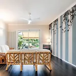 Hostům nabízí sluneční lehátka a slunečníky na pláži.